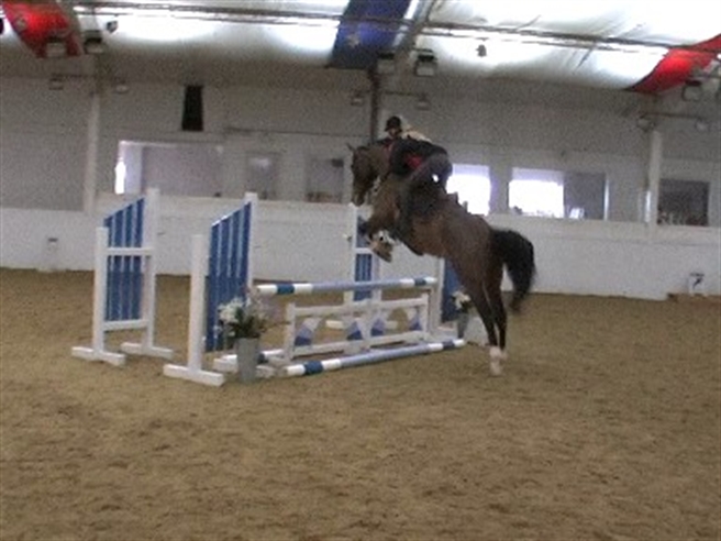 6yo (2006) very dark bay gelding 16.2hh. Good movement and incredibly pretty, scopey careful jump.
